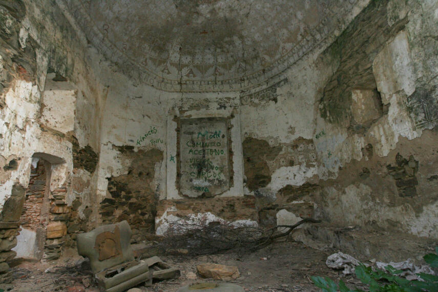El interior del cementerio de Talaván en Cáceres, España esconde un secreto en el interior de su ermita devorada por la vegetación. Unas terroríficas pinturas parecen prevenir al visitante. Algo temen los vecinos porque hace mucho que no se acercan por aquí.